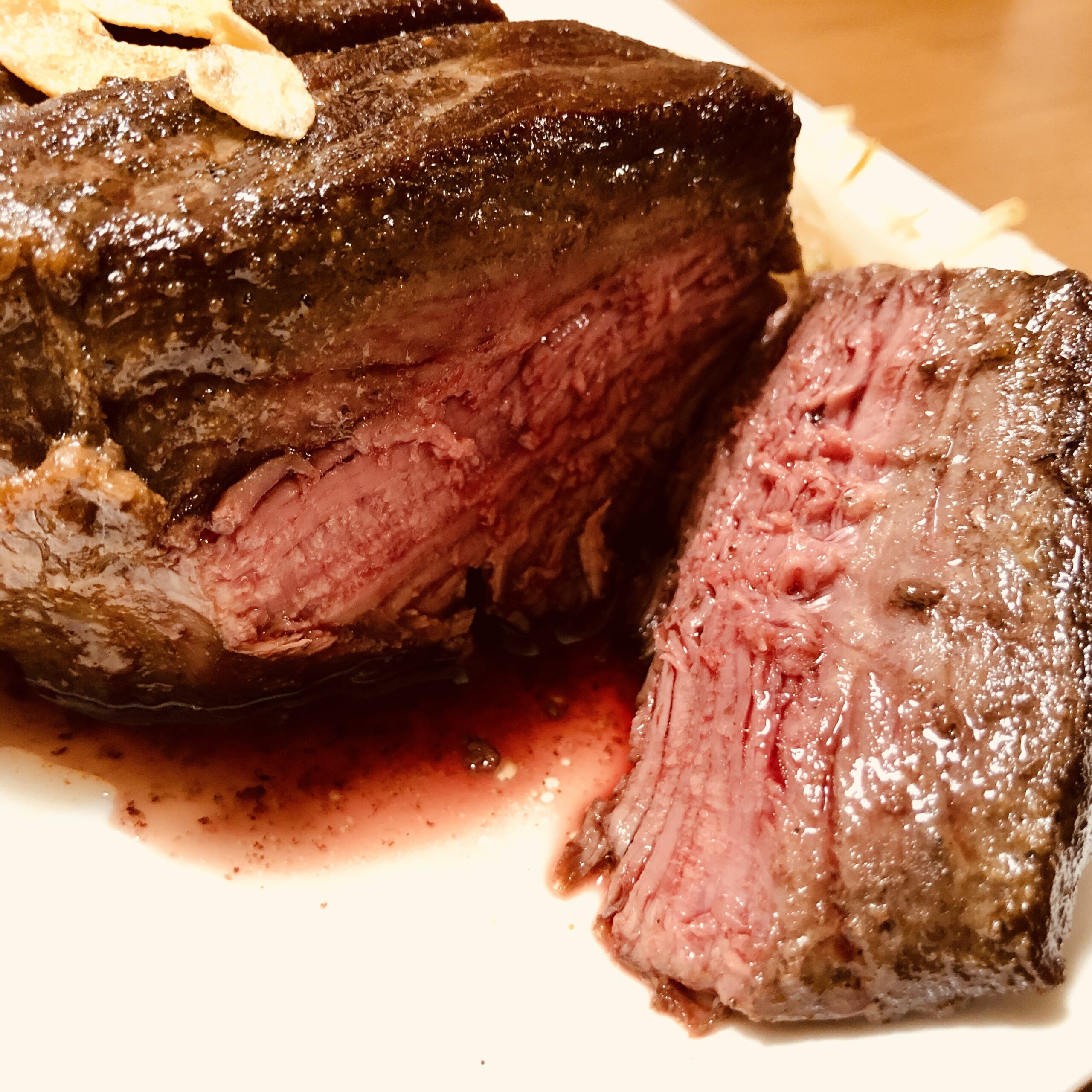 レア感のある牛ステーキ。