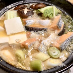 鮭や白菜、豆腐やきのこなど和風素材が煮込まれた味噌味… 続きを読む »